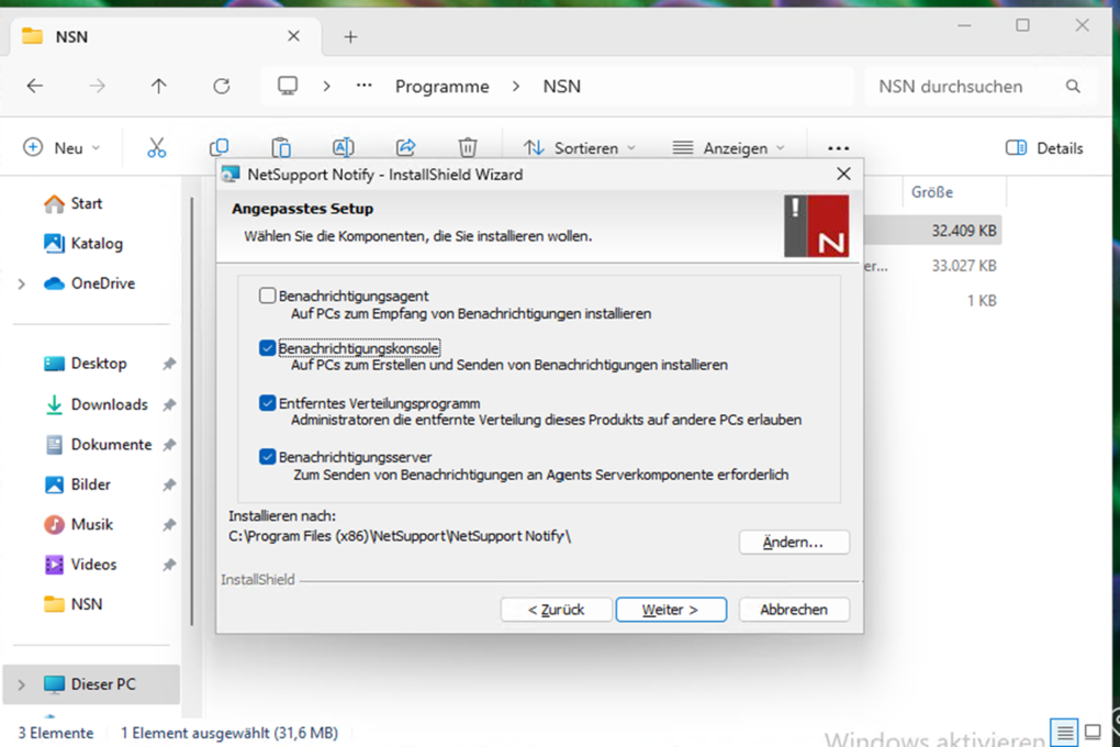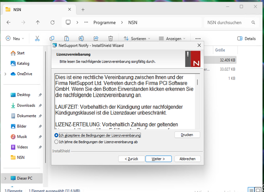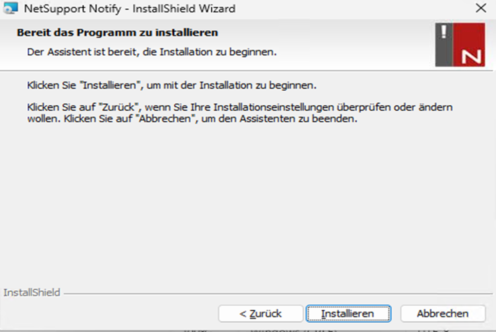 Starten Sie die NetSupport InstallShield Wizard als Administrator.