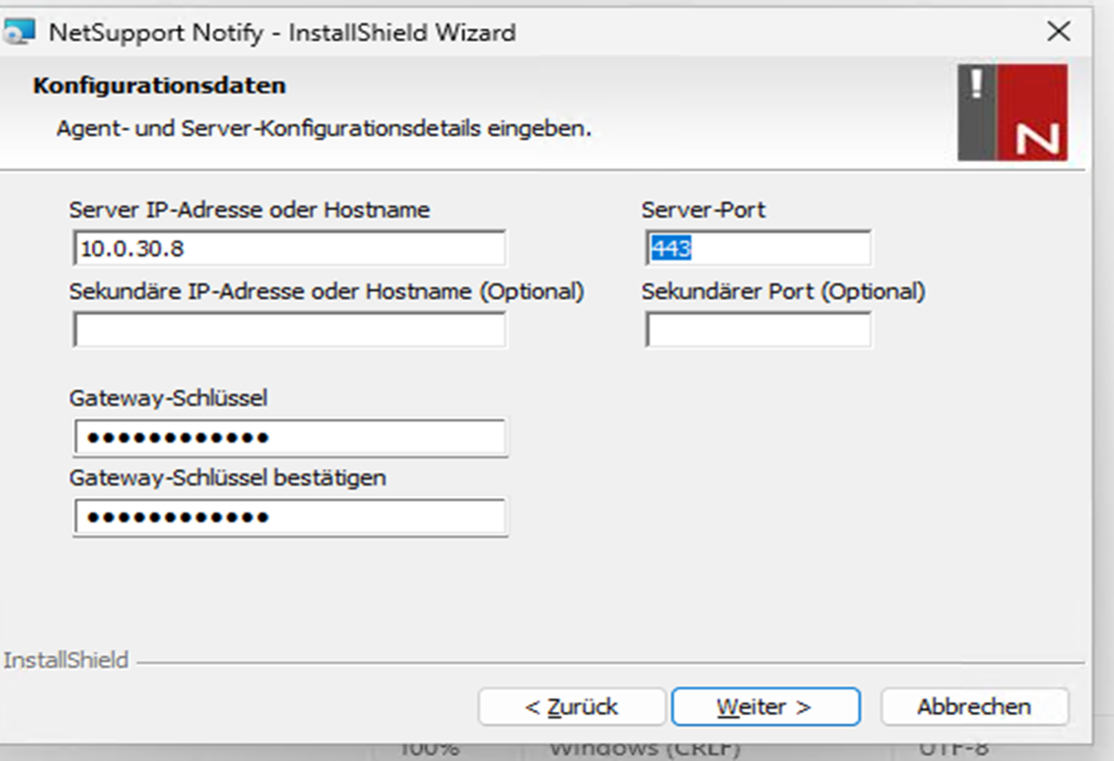Der „Gateway-Schlüssel“ kann individuell angepasst werden. Nach den Einstellungen auf „weiter“ klicken.