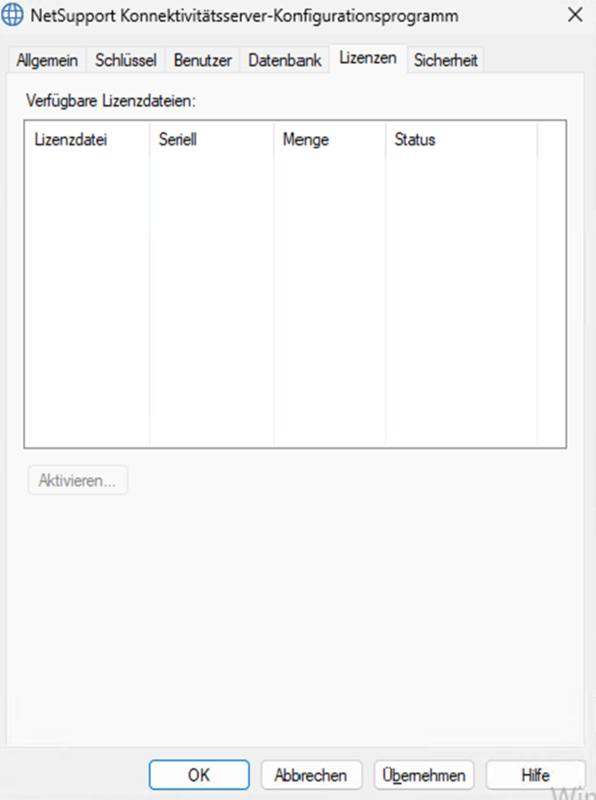 Unter „Lizenzen“ wird die Lizenz hinterlegt. Die Lizenz wird durch die *.lic im Installations-Ordner eingebunden.