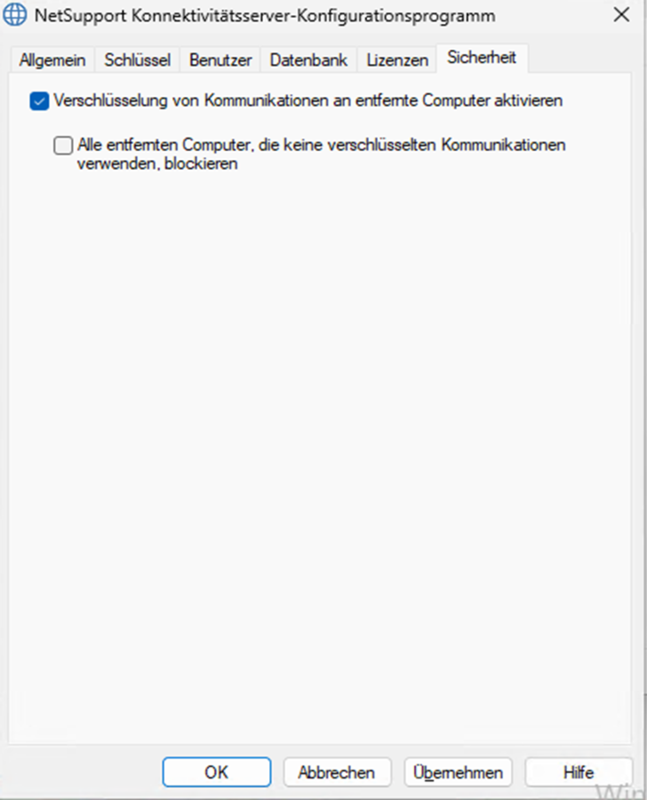 Hier den Haken im oberen Feld setzen. „Verschlüsselung von Kommunikationen an entfernte Computer aktivieren.“