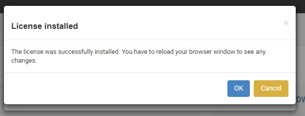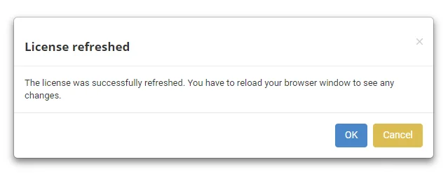 - Es erscheint ein Pop-up, das anzeigt, dass die Lizenz aktualisiert wurde.