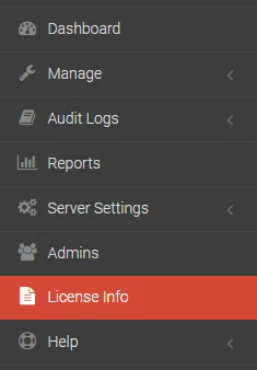 - Starten Sie die DataLocker SafeConsole und rufen Sie die Lizenzseite auf, indem Sie auf der linken Seite des Menüs auf »License Info« klicken.