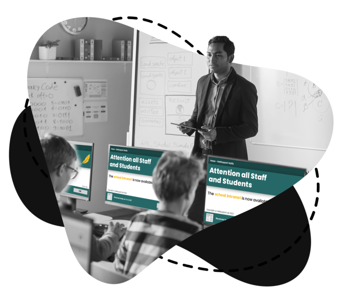 Mit NetSupport Notify können Sie in Echtzeit Benachrichtigungen und Alarme (Alerts) über LAN oder WAN zuverlässig und nachweislich an Windows-, macOS-, Linux-, Chrome- sowie iOS- und Android-Geräte und öffentliche Informationssysteme senden.