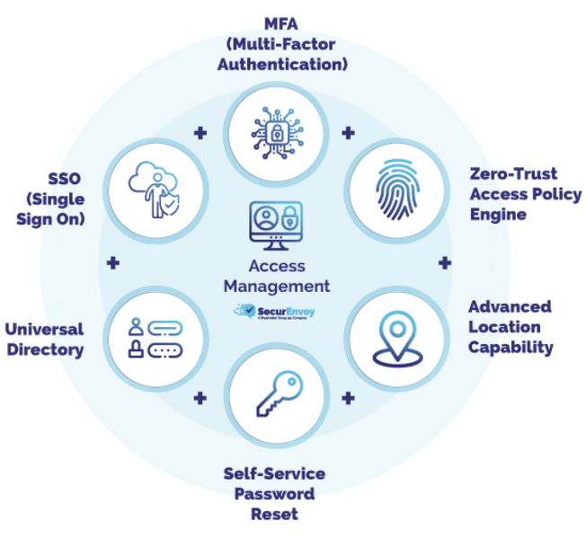 Mit Access Management verwalten Unternehmen und Organisationen zentral den Zugriff auf Netzwerke, Daten und Applikationen aller Anwender bereits vor der eigentlichen Anmeldung. Damit verbessern Sie die IT-Sicherheit in Ihrer Organisation. Die sichere Authentifizierung und Autorisierung sind zentrale Zero Trust Elemente und ermöglichen verbesserte IT-Security.